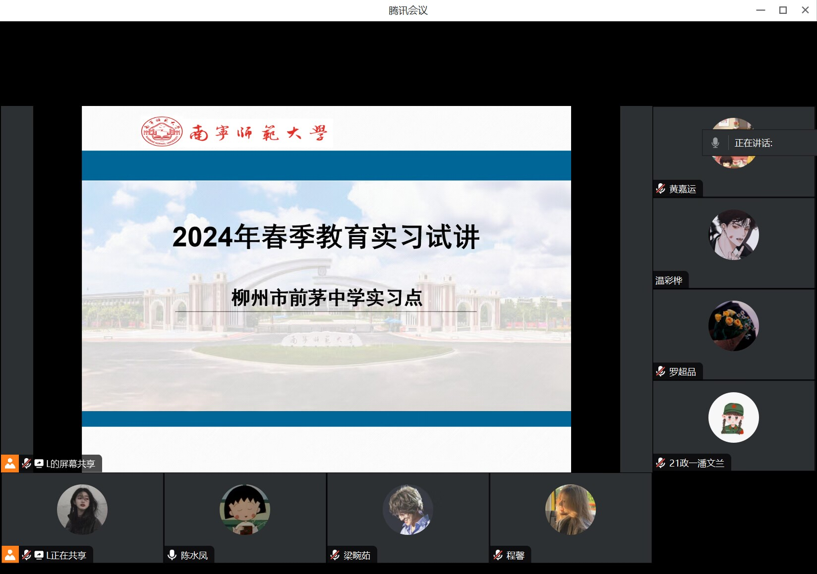 寒假期间,2021级全体同学开展了线上试讲,校内实习指导老师线上点评,同时也邀请了2020级同学为2021级同学传授实习经验、热心答疑解惑,从教材解读、课件制作、授课状态以及各实习学校的相关情况等进行了细致介绍。