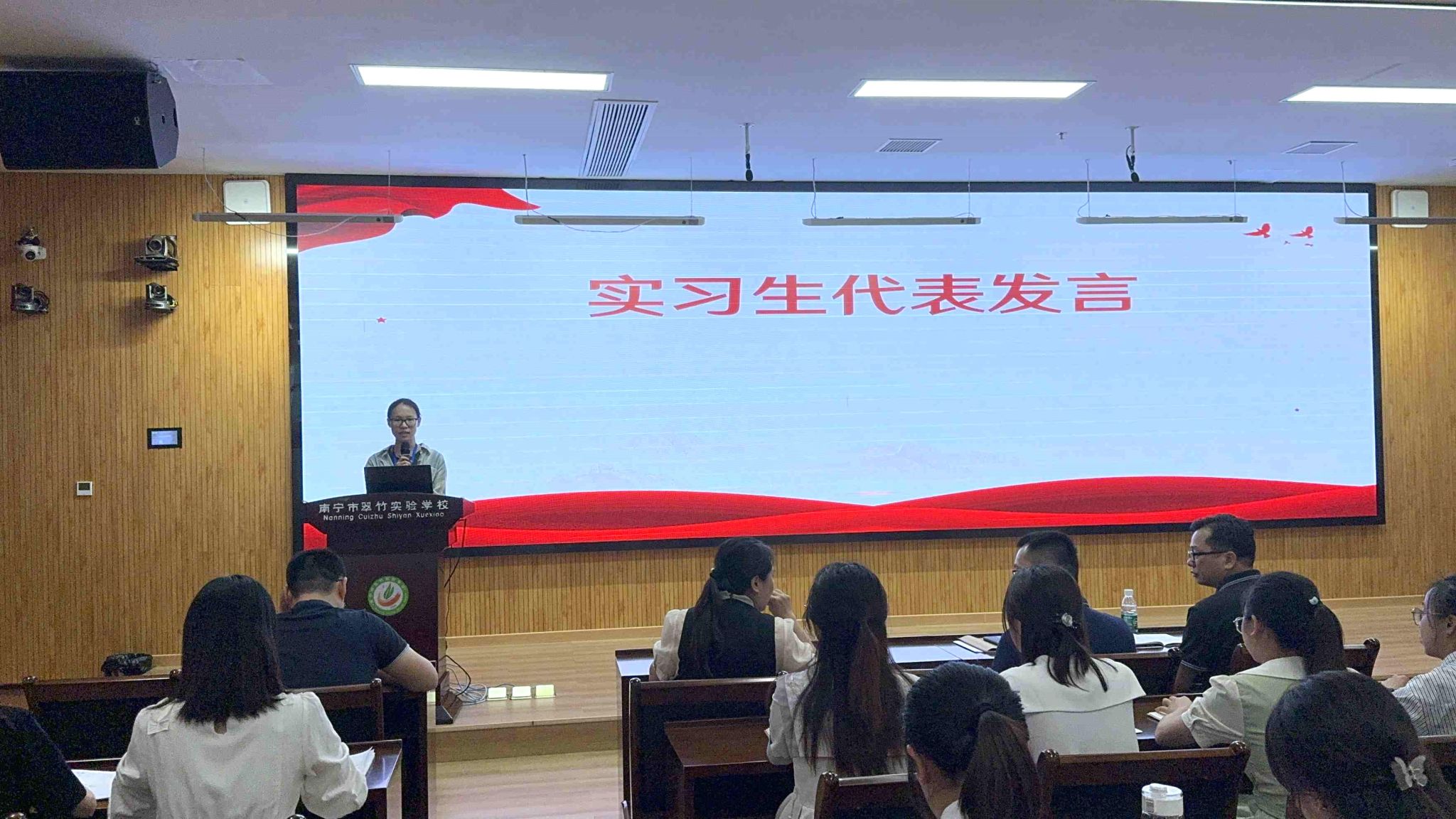 实习生代表冯菁菁在发言中代表全体实习生向所有为本次教育实习辛苦操劳的领导老师们表示衷心的感谢,并分享了实习期间的成长与收获。她表示在今后的教育事业中将继续努力奋斗,做学生喜爱、家长放心的人民教师,为社会的发展做出更大的贡献。