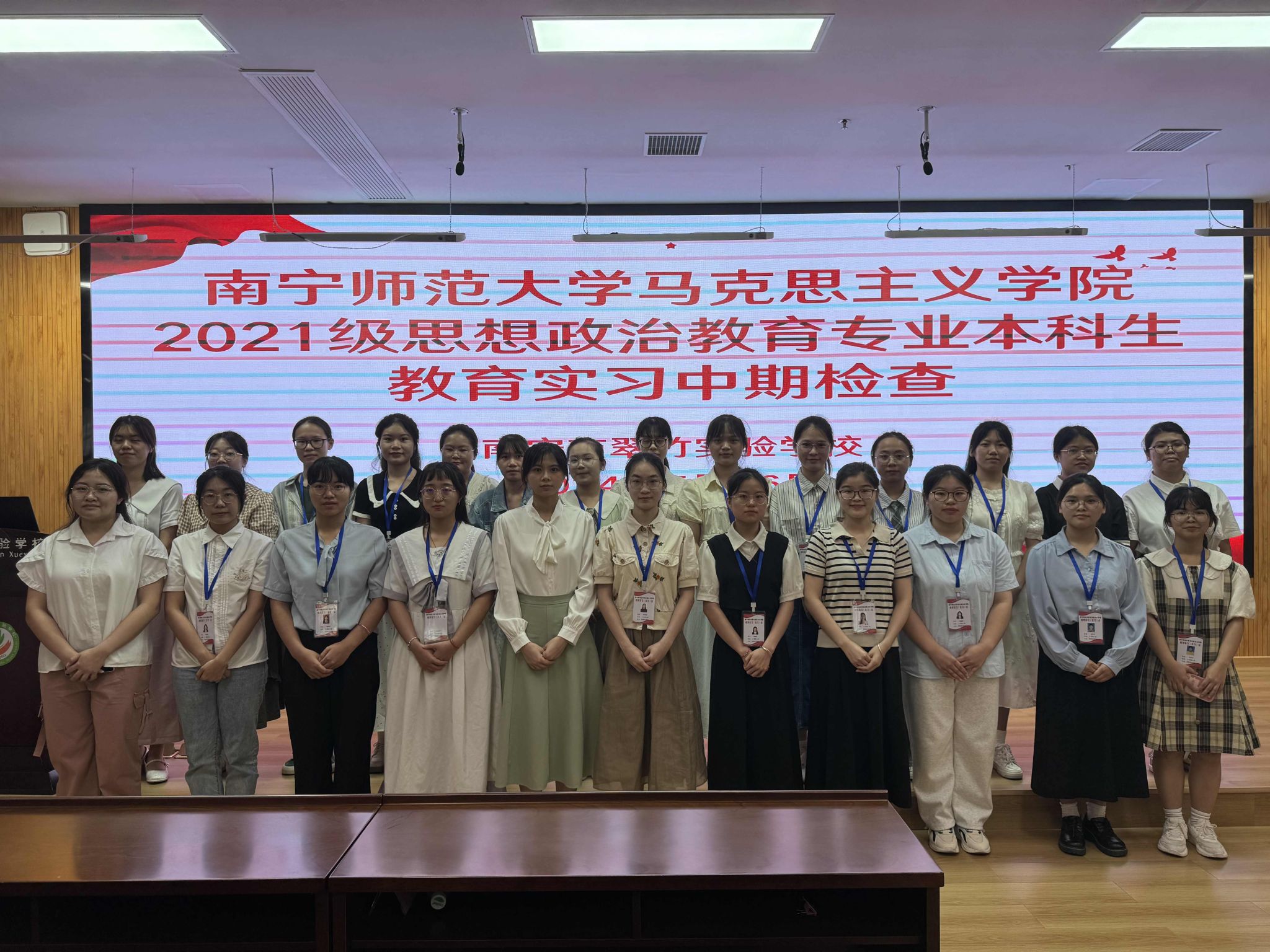 2024年3月18日至5月24日,我院马克思主义思想政治教育专业2021级学生共204人进行了为期两个多月的教育实习,本次实习在北海市北海中学、北海市北海七中、柳州市钢一中学、柳州市前茅中学、柳州市民族高中、南宁市仙葫学校、南宁市翠竹实验学校,南宁市明天学校、南宁市邕武路学校九所区内中学进行。截止2024年5月25日,2021级思想政治教育专业一、二、三班以及专升本班的同学们圆满完成各项实习工作,2021级思想政治教育专业陶行知实验班将于6月14日结束实习工作。
