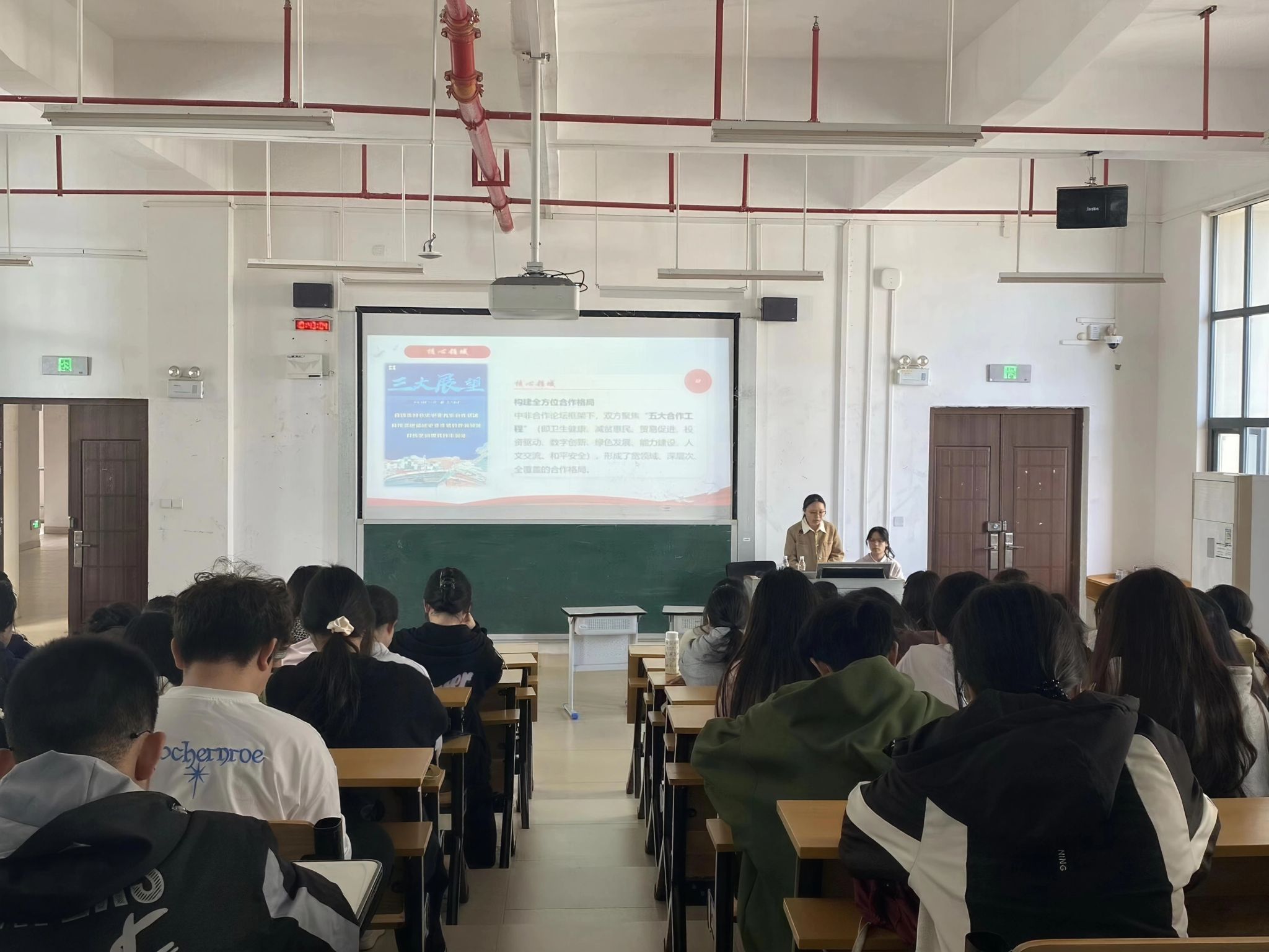 一场场生动讲解,一个个多元主题,让本次团课活动亮点纷呈、特色鲜明。其中,谢雨欣、黄诗容主讲的“中非携手促发展,共绘命运共同体”团课,注重引导同学们拓宽国际视野;陆海荣、陶晶晶带来的“青春逐光‘十五五’,砥砺奋进新征程”团课,通过鲜活案例阐释青年学子在“十五五”期间面临的机遇与挑战;覃椿晖、梁静怡主讲的“文脉赓续新征程,青春执笔写华章”团课,通过文物典籍展示与青年文化创新故事,让传统文化生动可感,有效激发了大家的文化自信;李佳璇、刘泳秀围绕“全民全运大湾区,同心同圆中国梦”展开分享,以运动健儿的拼搏故事传递正能量,点燃同学们的情感共鸣;蒙洋洋、农冬宁主讲的“‘四个自信’筑根基,青春建功正当时”团课,系统诠释“四个自信”核心内涵,夯实了同学们的思想根基;谢楷钰、黄玉秀主讲的“廉洁‘微’课堂,青春正能量”团课,结合生活中的微案例分享廉洁心得,既发人深省又实用易懂;梁秋芳、宋佳欣则聚焦“践行网络文明,规范你我言行”,在分享中结合青年日常网络场景解读文明准则,兼具针对性与实用性。
