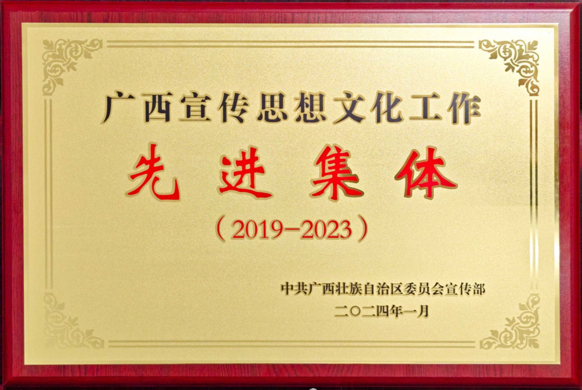 近日,为表彰先进、树立典型,弘扬正气、激励斗志,汇聚起建设新时代壮美广西的磅礴力量,广西壮族自治区党委宣传部决定,授予100个单位“广西宣传思想文化工作先进集体”称号,授予200名个人“广西宣传思想文化工作先进个人”称号。我校betway必威西汉姆联获评“广西宣传思想文化工作先进集体(2019—2023)”。