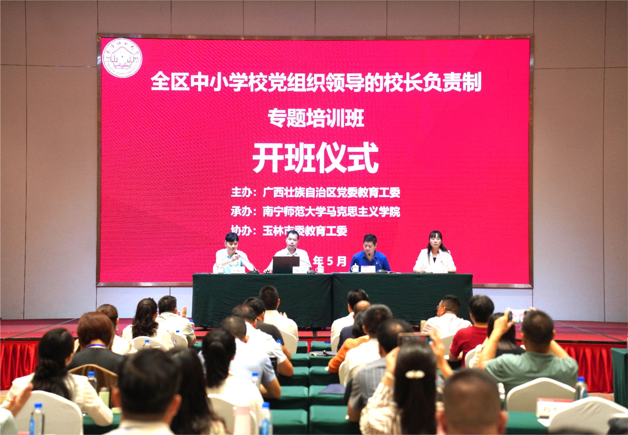 2024年5月6日-9日,由自治区党委教育工委主办、betway必威西汉姆联betway必威西汉姆联承办及玉林市党委教育工委协办的全区中小学校党组织领导的校长负责制专题培训班在玉林顺利举办。来自全区部分市、县(市、区)党委教育工委专职副书记及中小学校党组织书记共100名学员参加了本次培训。自治区党委教育工委组织部三级调研员邓杰、betway必威西汉姆联betway必威西汉姆联院长曾令辉教授、玉林市委教育工委专职副书记梁武润及betway必威西汉姆联betway必威西汉姆联教师姜黎黎出席开班仪式。
