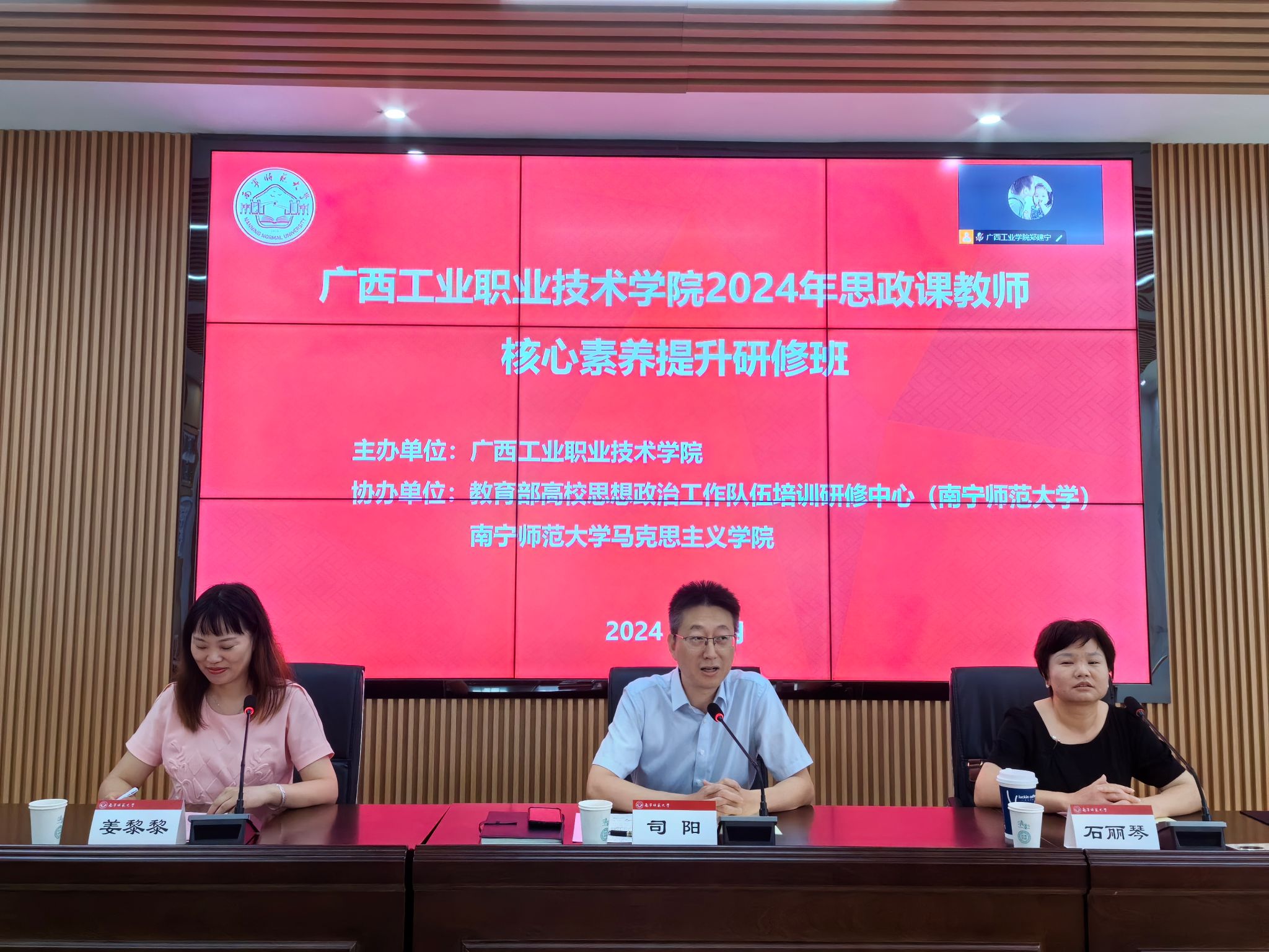 2024年5月31日,由广西工业职业技术学院主办,教育部高校思想政治工作队伍培训研修中心(betway必威西汉姆联)及betway必威西汉姆联betway必威西汉姆联承办的广西工业职业技术学院2024年思政课教师核心素养提升研修班在南宁顺利举行开班仪式。来自广西工业职业技术学院43名思想政治理论课教师参加培训。广西工业职业技术学院betway必威西汉姆联院长司阳副教授、betway必威西汉姆联betway必威西汉姆联副院长石丽琴教授及betway必威西汉姆联姜黎黎老师出席了开班仪式。