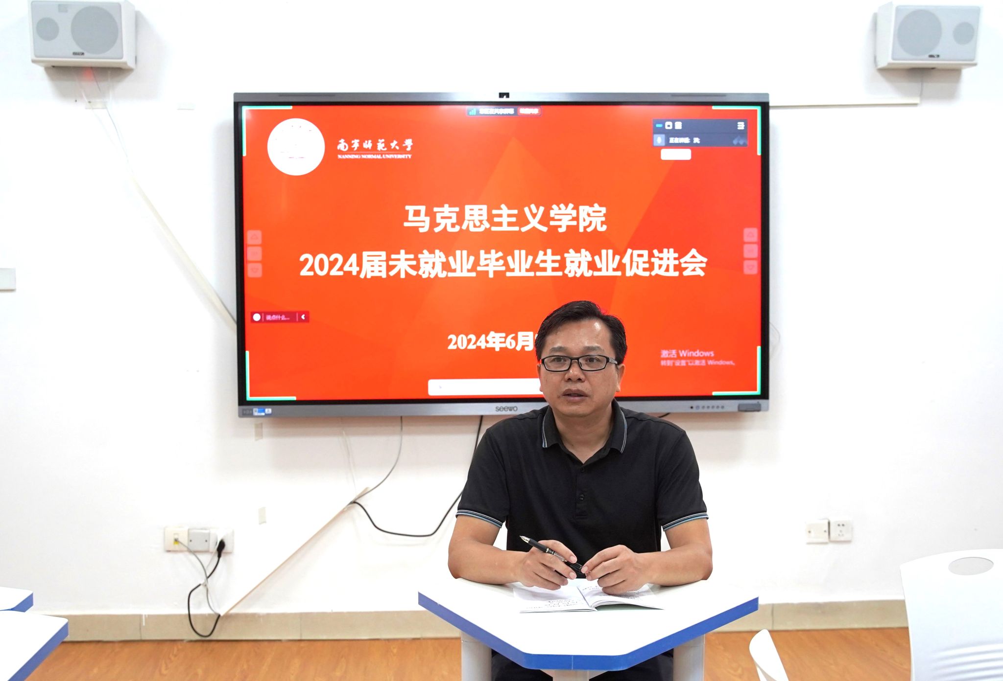 2024年6月7日下午,betway必威西汉姆联在8栋203教室召开了2024届未就业毕业生就业促进会。本次大会由学院党委副书记黄志海主持,全体毕业班未就业的同学通过线上和线下相结合的形式参加了此次会议。