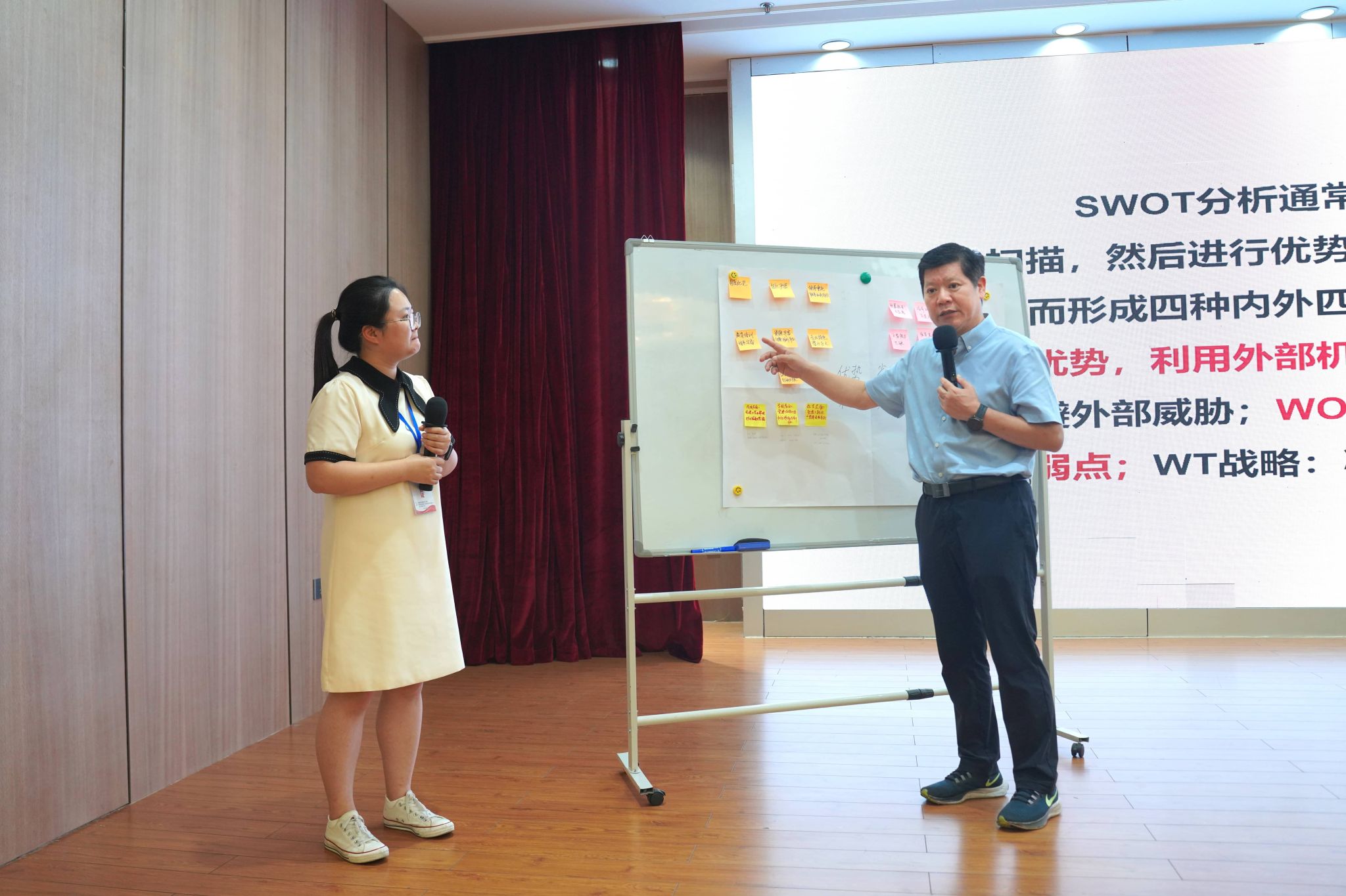 开班仪式结束后,南京师范大学betway必威西汉姆联院长、教育部思想政治工作队伍培训研修中心特聘专家王刚教授以《学习贯彻习近平文化思想》为题作第一专题报告。王教授从形成条件、主要内容和理论体系、蕴含的辩证逻辑、原创性贡献、重要意义五个方面深入阐释了习近平文化思想,深化了学员们对党的创新理论的认识。下午,betway必威西汉姆联betway必威西汉姆联院长、教育部思想政治工作队伍培训研修中心(betway必威西汉姆联)副主任、教育部思想政治工作队伍培训研修中心特聘专家曾令辉教授以《高校基层党组织整体化建设》为题作第二专题报告。曾教授以其丰富的辅导员经历和经验,聚焦新时代高校基层党建的主题,从新时代高校落实立德树人根本任务和为党育人、为国育才的使命,全面分析了新时代育人新要求和高校基层党建新任务,运用SWOT分析方法,探讨了高校基层党组织建设的内部优势与劣势、外部机遇与挑战等因素,提出了高校基层党组织整体化建设总体要求、主要原则和方法策略。