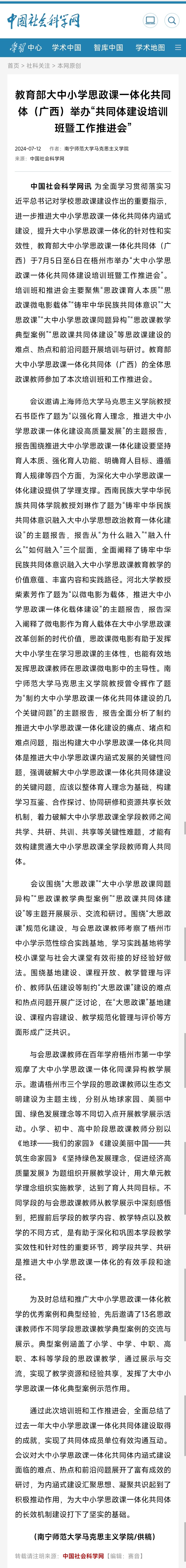 【转载】教育部大中小学思政课一体化共同体(广西)举办“共同体建设培训班暨工作推进会”