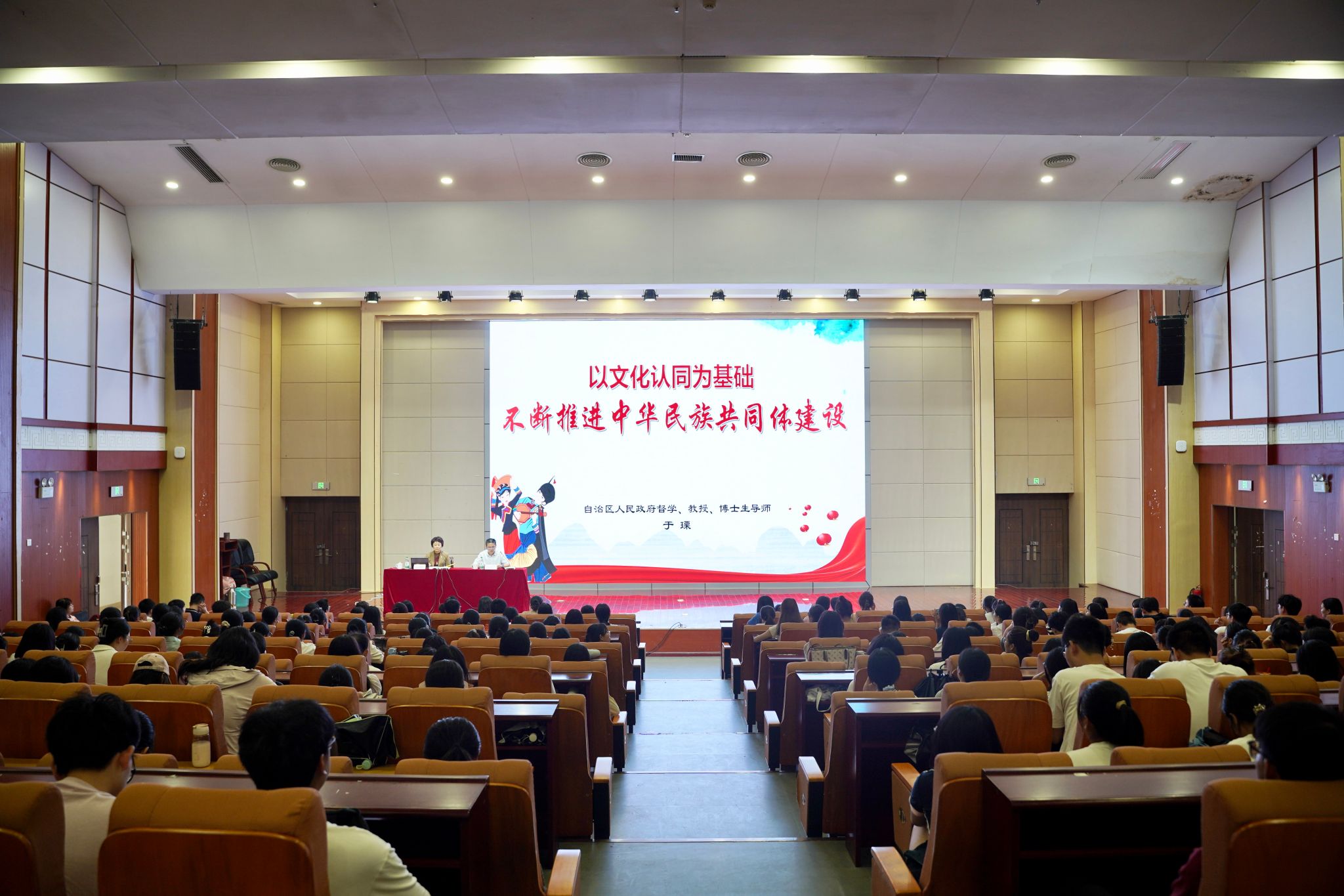为深入学习习近平总书记关于《铸牢中华民族共同体意识推进新时代党的民族工作高质量发展》的重要论述,贯彻落实中央统战部、中央宣传部、教育部、国家民委共同印发的《关于加强铸牢中华民族共同体意识理论研究体系建设的意见》,加强学校铸牢中华民族共同体意识教育,2024年9月27日下午,我校betway必威西汉姆联邀请广西中华民族共同体意识研究院学术委员会主任、自治区人民政府督学、广西老教授协会会长、原广西师范学院党委书记于瑮教授,为师生作题为“以文化认同为基础 不断推进中华民族共同体建设”的学术讲座。讲座由betway必威西汉姆联党委副书记隆广庆主持,betway必威西汉姆联、法学与社会学院、教育科学学院、新闻与传播学院师生等参加了此次讲座。