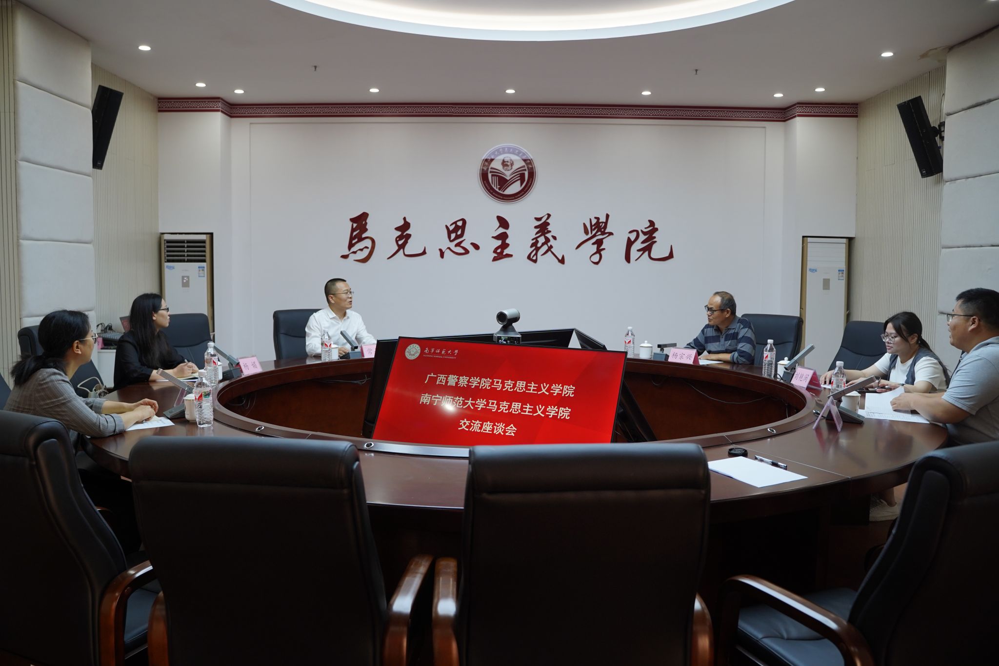 参观结束后,双方围绕“形势与政策”课程建设进行了深入交流。杨宗兴主任系统介绍了我院“形势与政策”课程在课程体系构建、师资队伍建设、集体备课模式及教学安排等方面的创新举措与实践经验。刘艳闽主任重点展示了我院实践教学特色,通过“三三制”微教学平台生动呈现了实践课程的育人模式与教学成果。常叔杰教授也介绍了广西警察学院betway必威西汉姆联“形势与政策”课程的建设情况。双方就课程建设中的重点难点问题进行了深入探讨。最后,常叔杰教授表示,我院的先进经验为广西警察学院的“形势与政策”课程建设提供了宝贵参考,此行收获颇丰,希望未来能进一步加强两院间的交流合作。